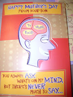 When I woke up on Mothers Day, I was sick as a dog. I swear it always happens that I'm sick on days I should be celebrating. But just walking downstairs made me forget about my sickness completly, because I woke to my wonderful husband and son holding Mothers Day cards for me!